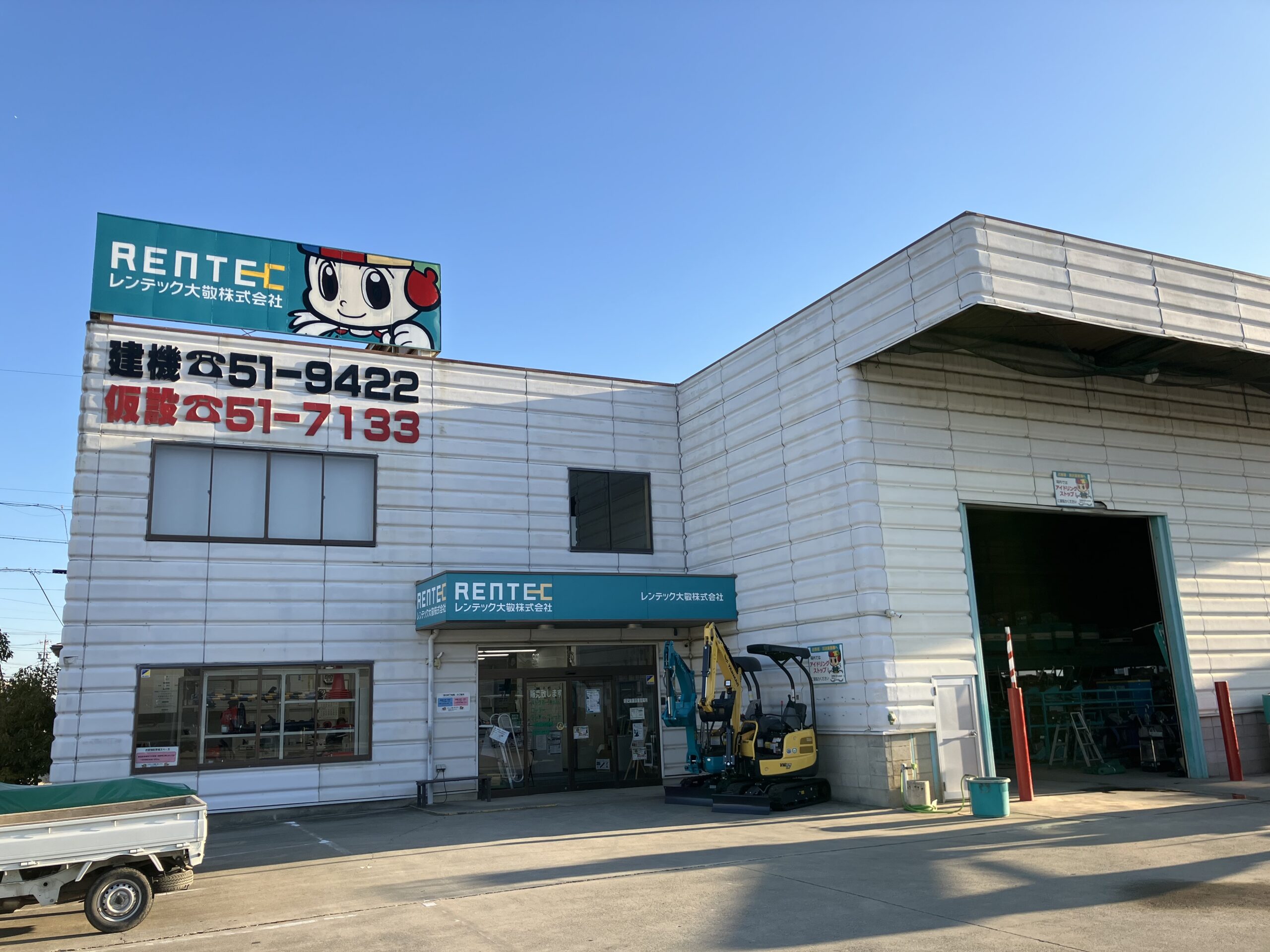 レンテック大敬 岡崎南営業所では、建設機械や小物類のレンタルを中心に、