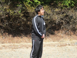30m離れた役員たちに自ら設定した目標を宣言します。